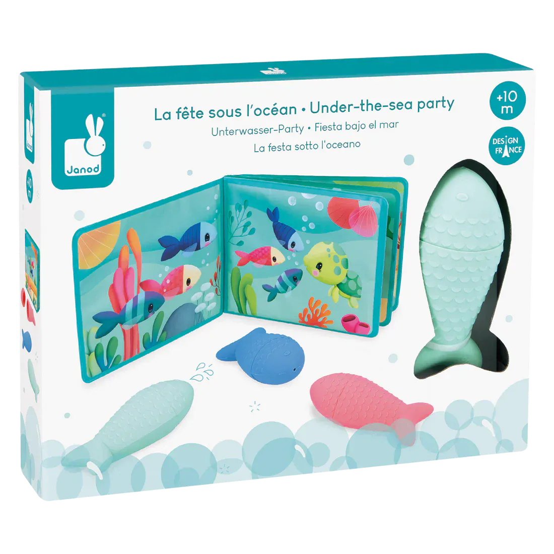 Le Livre de Bain La Fête Sous l’Océan de Janod est un jouet aquatique destiné aux enfants dès 10 mois.